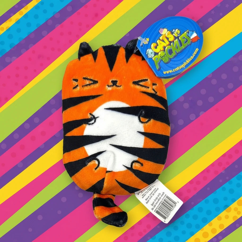 Bring bold pattern and playful energy to your collection with Stripes from Cats VS Pickles! 🟦🐱 This character-inspired plush features a soft, rounded build with expressive stitched details and a standout striped theme that gives Stripes a lively, eye-catching personality. Compact and cozy, it’s easy to display on shelves, desks, or alongside other characters from the series.