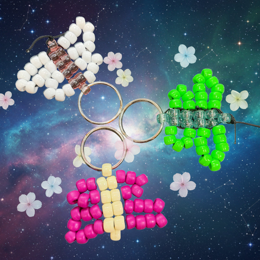 Kandi butterfly keychain charms in various colors. If you want a specific color please indicate which one or it will be randomized.