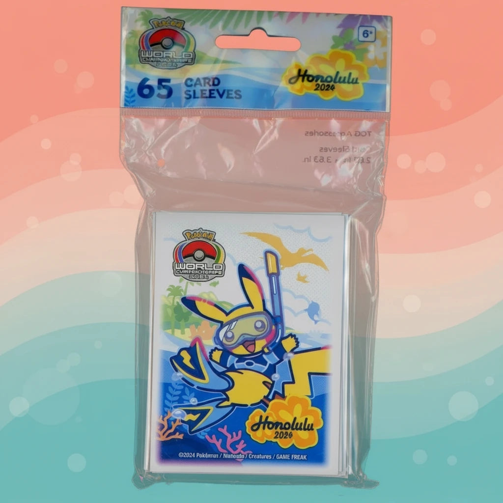 Protect your deck with island style using these event-exclusive Pikachu Honolulu Card Sleeves from Worlds 2024 🌺⚡🐭. Each pack includes 65 premium sleeves featuring bright tropical art and adorable Pikachu energy, giving your cards both protection and personality. Perfect for competitive play, collecting, or making your deck stand out at leagues and tournaments 🌴✨. A must-have for fans who want a piece of Hawaii’s championship vibe!