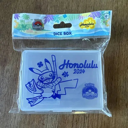 Keep your game gear secure with the official Honolulu 2024 Dice Box 🌺🎲⚡. Built for durability and daily play, this event-exclusive accessory stores dice, counters, and small tools while showing off bold World Championships flair 🌴🔥. Compact enough for travel yet stylish enough for display, it’s a perfect pickup for competitors, collectors, and anyone who loves premium Pokémon merch 🌈✨.
