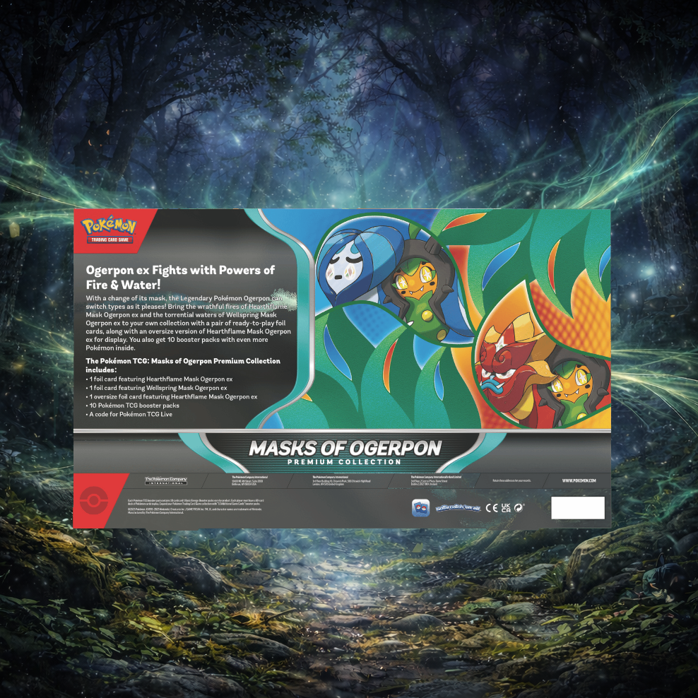 Step into Kitakami and uncover the mystery behind Ogerpon’s many masks! This Premium Collection celebrates one of the most story-driven Pokémon of the Scarlet & Violet era, blending striking artwork, powerful cards, and a premium unboxing experience for collectors and players alike.