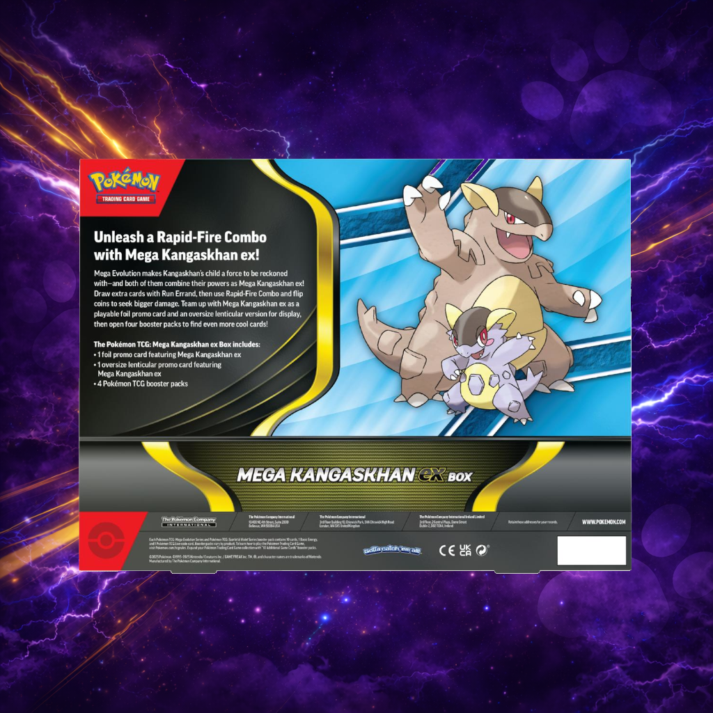 Team up with Mega Kangaskhan ex to set up with support moves, then let parent and baby swing together for big, coin-flip damage. Crack the four booster packs for extra hits, sleeve the promo, and show off the jumbo card on your shelf or at the shop. 🔥