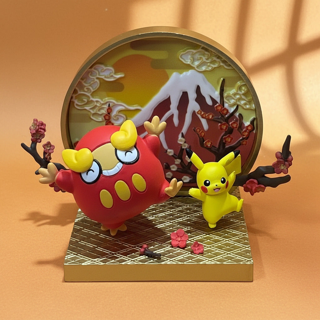 🔥 Darumaka + Pikachu in a themed window diorama