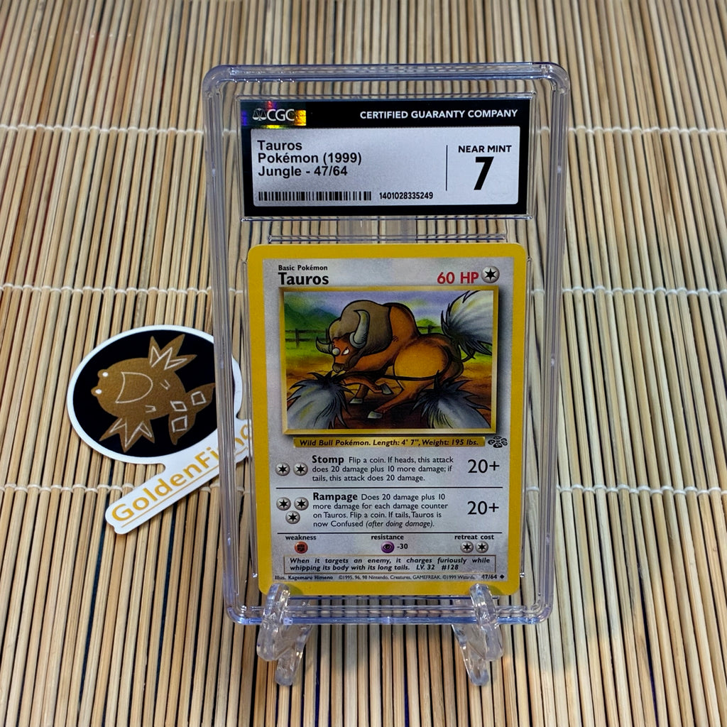 Charge back to the Base Set Jungle era with this vintage Tauros, graded CGC 7. With classic artwork and a solid mid-grade rating, this card is perfect for collectors rebuilding the originals or seeking that nostalgic ‘90s charm.