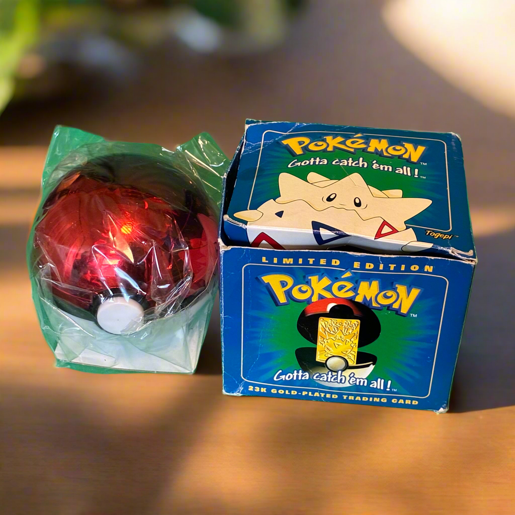 Hatch a piece of Pokémon history with this sealed Togepi 23 karat gold-plated card, released during the iconic 1999 Burger King Pokémon promotion. Featuring a beautifully engraved image of Togepi, this collectible comes factory sealed in its original blue display box—a rare and pristine find for serious collectors and nostalgic fans alike. 💙✨