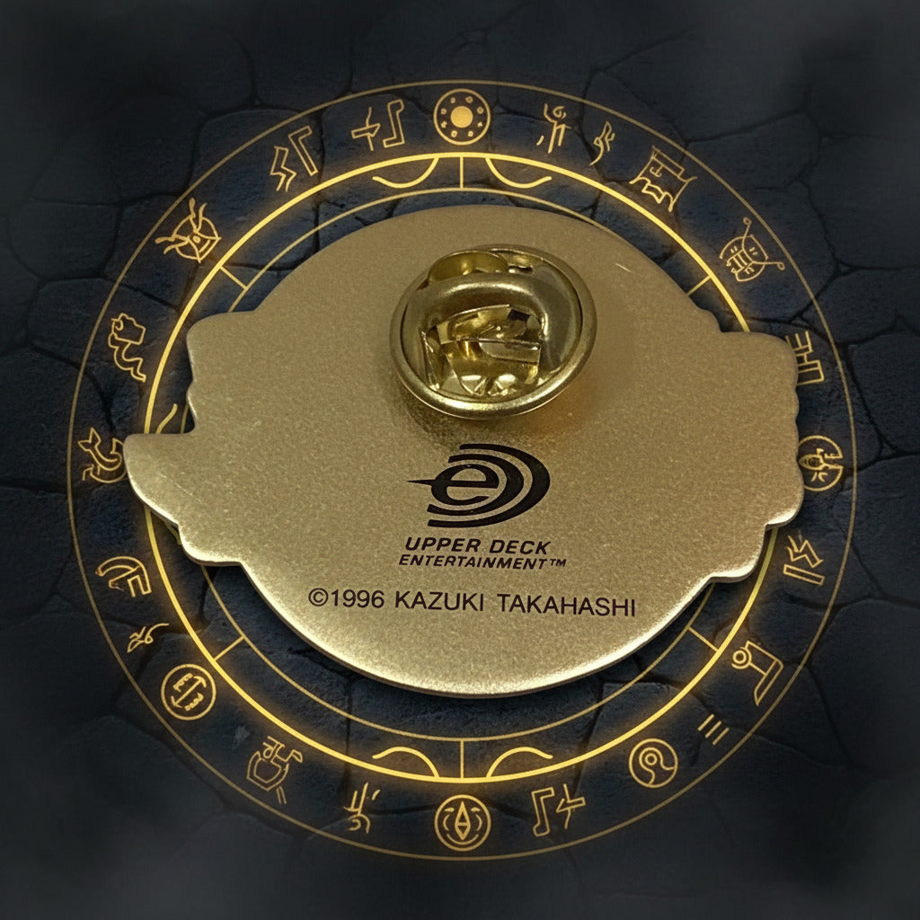 🔥 A true throwback collectible for serious duelists and fans of the early era! This officially licensed pin features the iconic Yu-Gi-Oh! Trading Card Game logo with a bold gold-trim finish, backed by Upper Deck Entertainment branding and a 1996 Kazuki Takahashi copyright stamp.